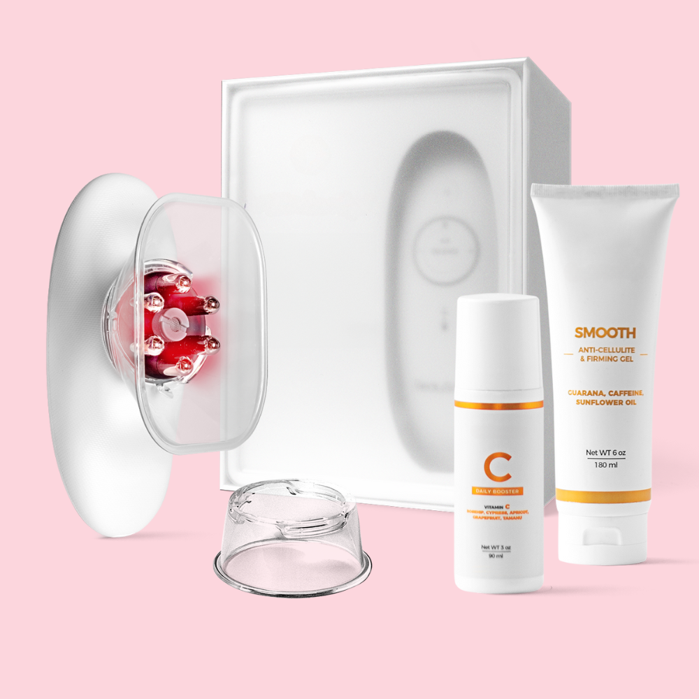 Our unique combination of cupping, microcurrent, and red-light therapy is specifically designed to offer you visible improvements in skin firmness, diminished fat cells, and reduced appearance of cellulite and stretch marks in this timeframe.