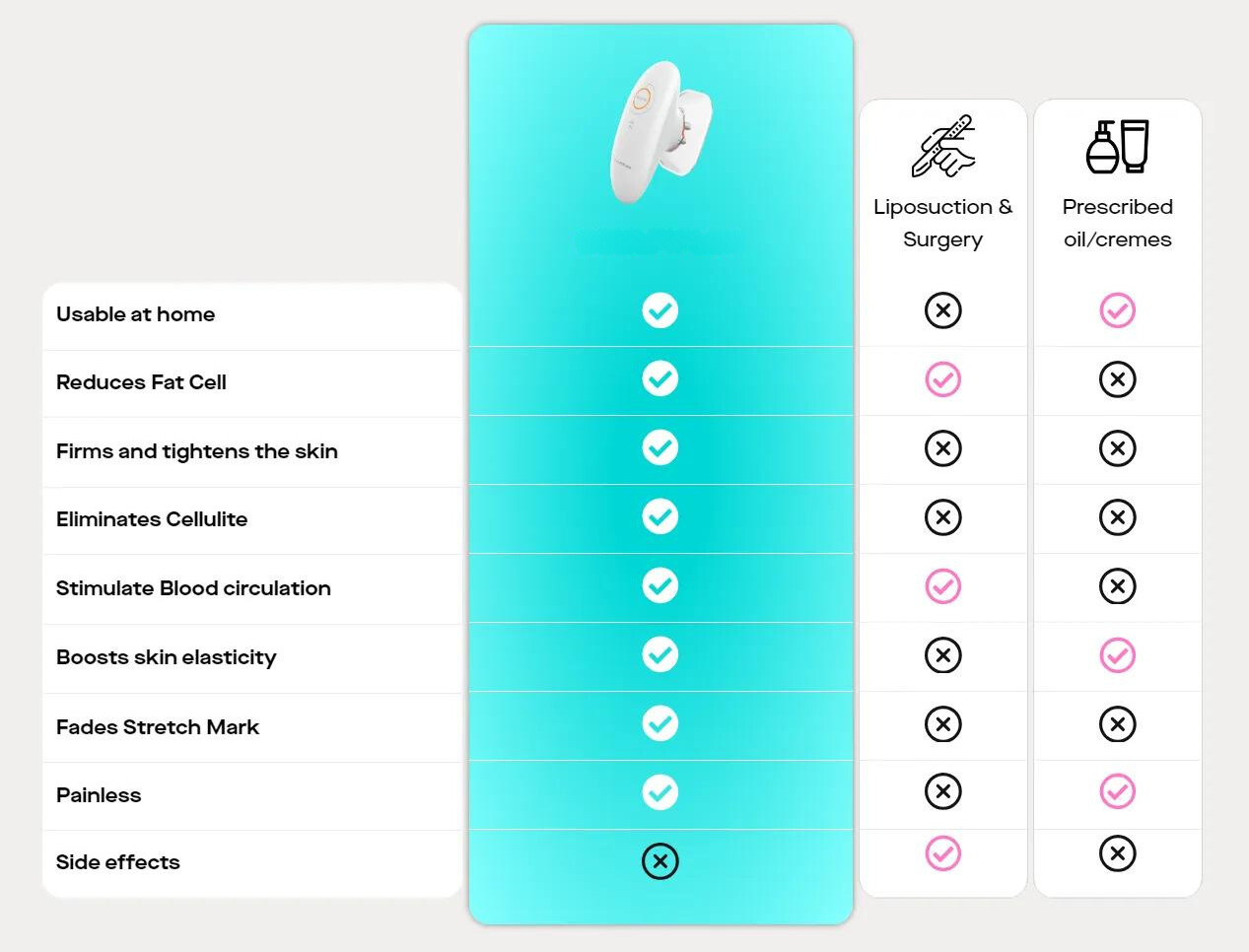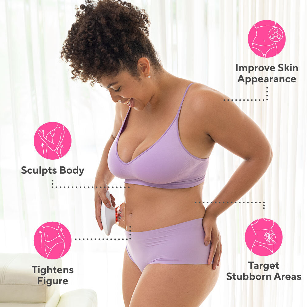 The first 3-in-1 device designed to tone flabby arms, tighten hips, get rid of cellulite, and fade stretch marks across the abdomen, back, legs, and buttocks — all pain-free and without surgery.